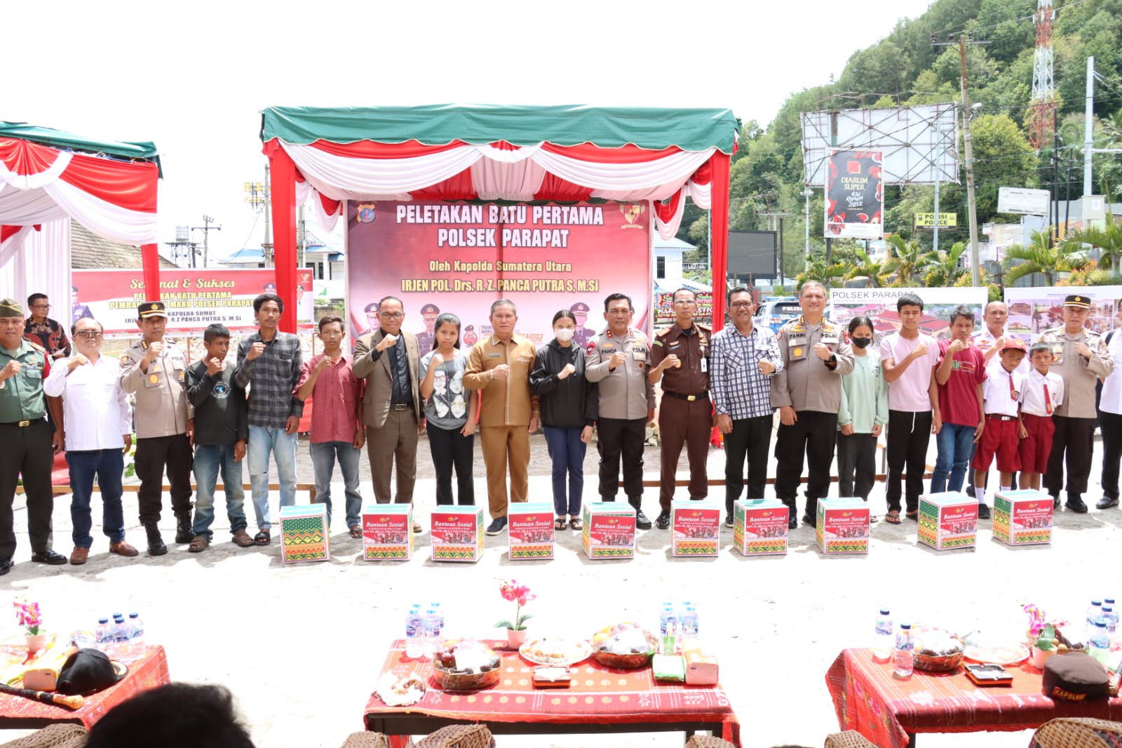 Setelah prosesi peletakan batu pertama dan penandatanganan prasasti, rangkaian acara dilanjutkan dengan pembagian bantuan sosial kepada anak yatim dan masyarakat Parapat.