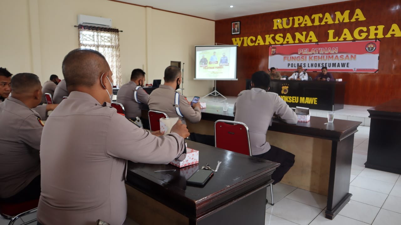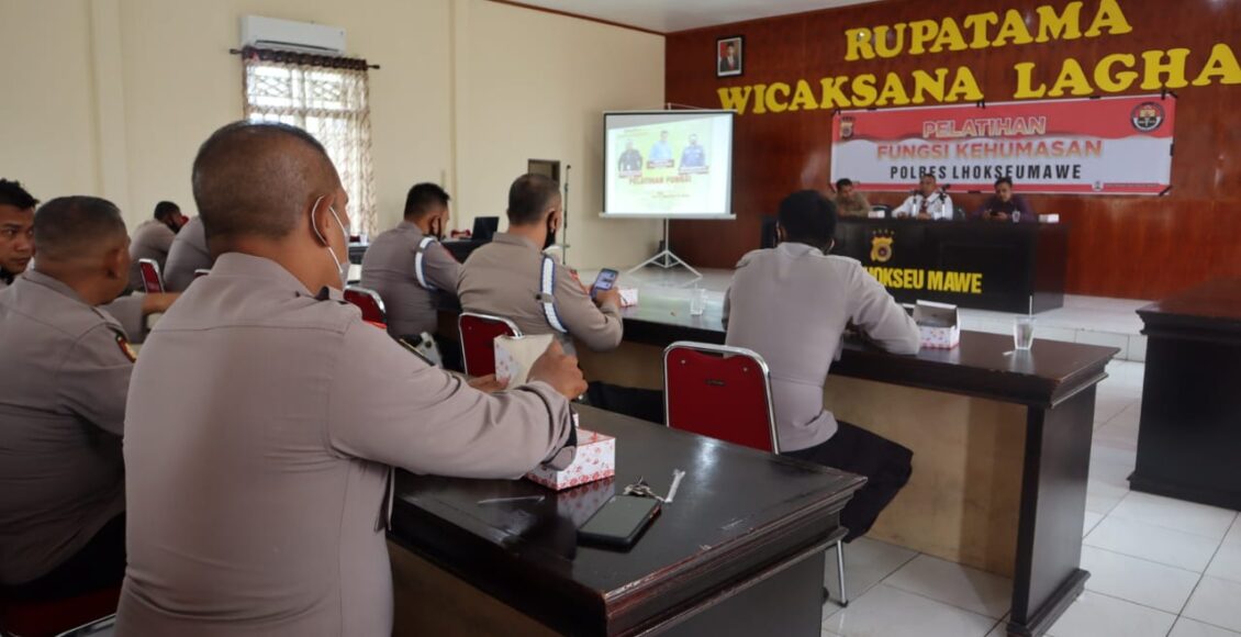LHOKSEUMAWE,ikagawanews.id – Si Humas Polres Lhokseumawe menggelar pelatihan fungsi teknis guna mengasah kemampuan dalam berbicara di depan umum dan menjadi pembicara di depan publik, kegiatan ini berlangsung di aula Rupatama Wicaksana Laghawa Mapolres Lhokseumawe, Sabtu (19/3/2022).