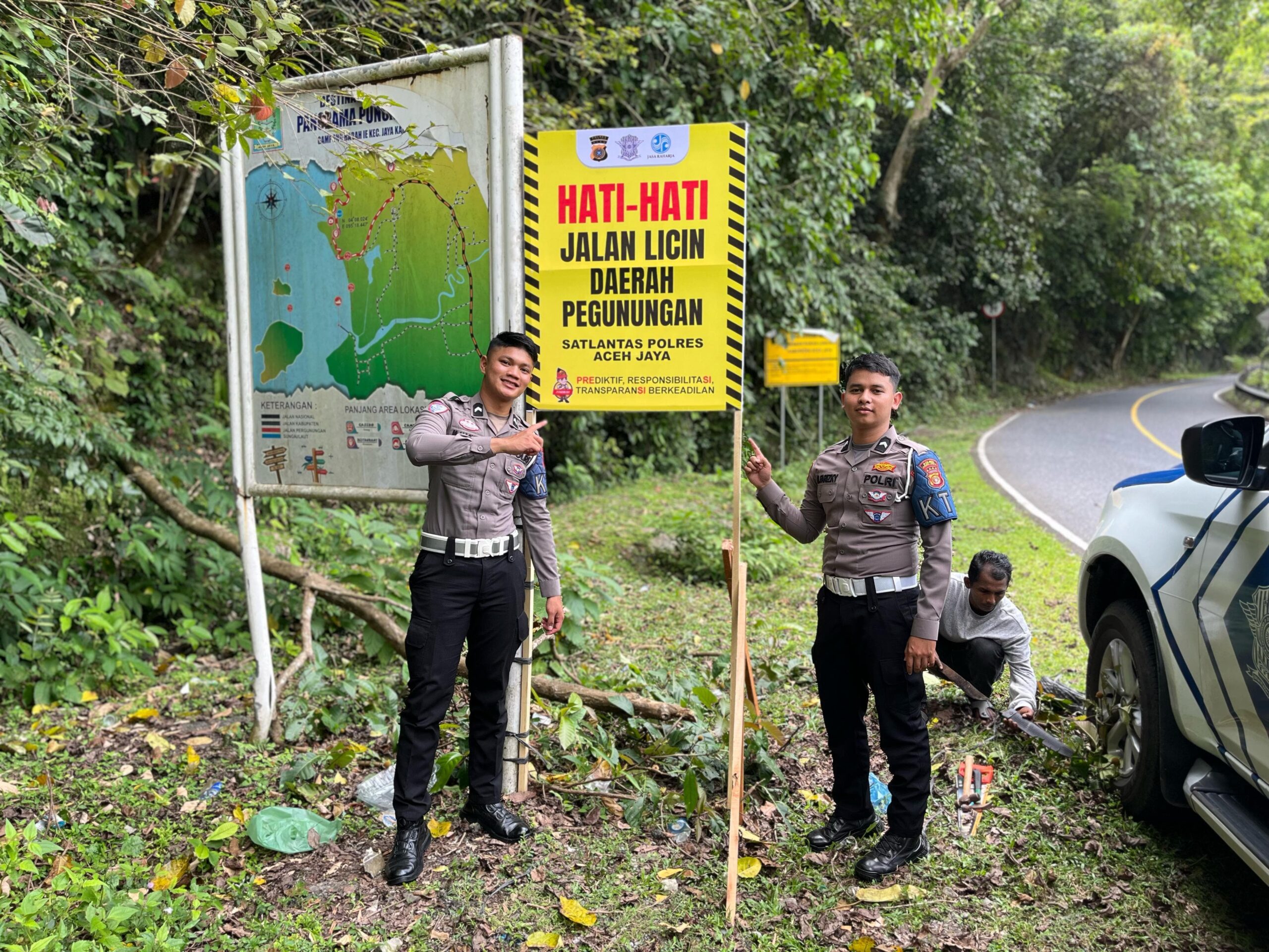 Pemasangan Spanduk Himbauan Daerah Rawan Kecelakaan Menjelang Mudik Lebaran 2025 Oleh Satlantas Polres Aceh Jaya