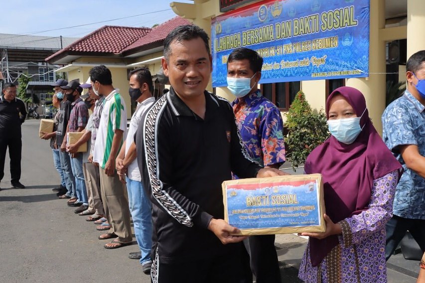 Kegiatan di mulai dari senam aerobik bersama di halaman Mapolres, dengan diikuti seluruh personel, lalu dilanjutkan dengan pembagian sembako kepada para pegawai harian lepas (PHL) Polres Kebumen.