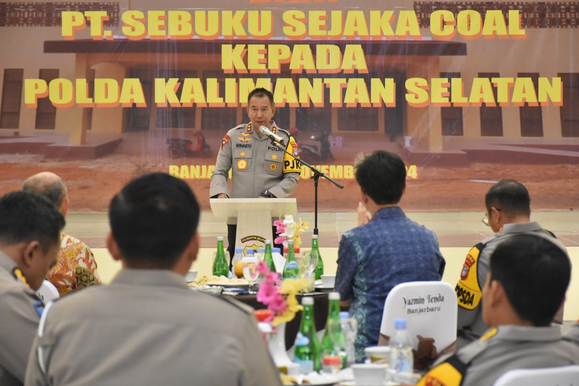 Kabid Humas Polda Kalsel Kombes Pol Adam Erwindi, S.I.K., M.H., mengatakan, dalam sambutannya Kapolda Kalsel mengucapkan terimakasih dan mengapresiasi PT. Sebuku Sejaka Coal atas dukungan dan partisipasinya kepada Polda Kalsel, melalui hibah bangunan gedung auditorium Polda Kalsel. “Semoga keberadaan gedung auditorium ini dapat menunjang berbagai kegiatan di lingkungan Polda Kalsel, serta memberikan manfaat berupa peningkatan kualitas kinerja anggota kepolisian setempat dalam rangka menciptakan situasi kamtibmas yang kondusif diwilayah Kalimantan Selatan,” harap Irjen Pol Winarto.