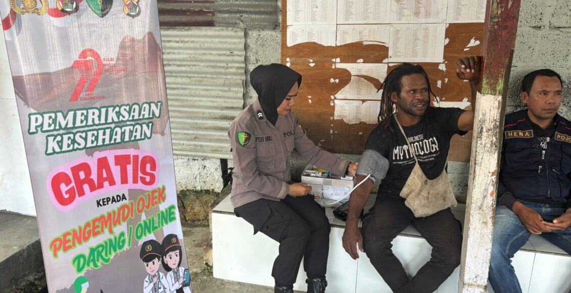SENTANI,ikagawanews.id – Polres Jayapura menggelar pemeriksaan kesehatan gratis bagi pengemudi ojek di Pangkalan Ojek Pojok jelang HUT Bhayangkara ke-79 (11/6). Kegiatan ini bertujuan untuk memastikan kesehatan para pengemudi ojek yang sehari-hari berinteraksi dengan masyarakat.