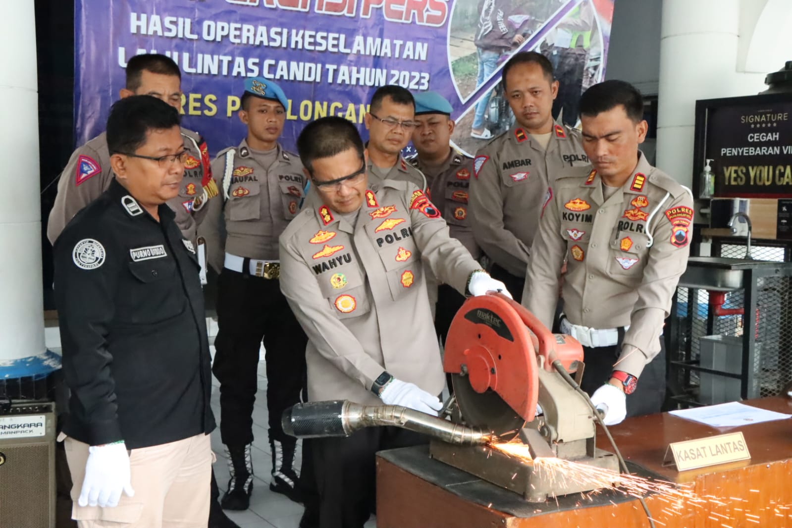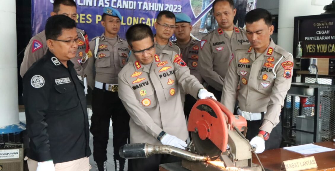 Pemusnahan Knalpot Brong, Saat Konferensi Pers Hasil Operasi Keselamatan Candi 2023 di Kota Pekalongan
