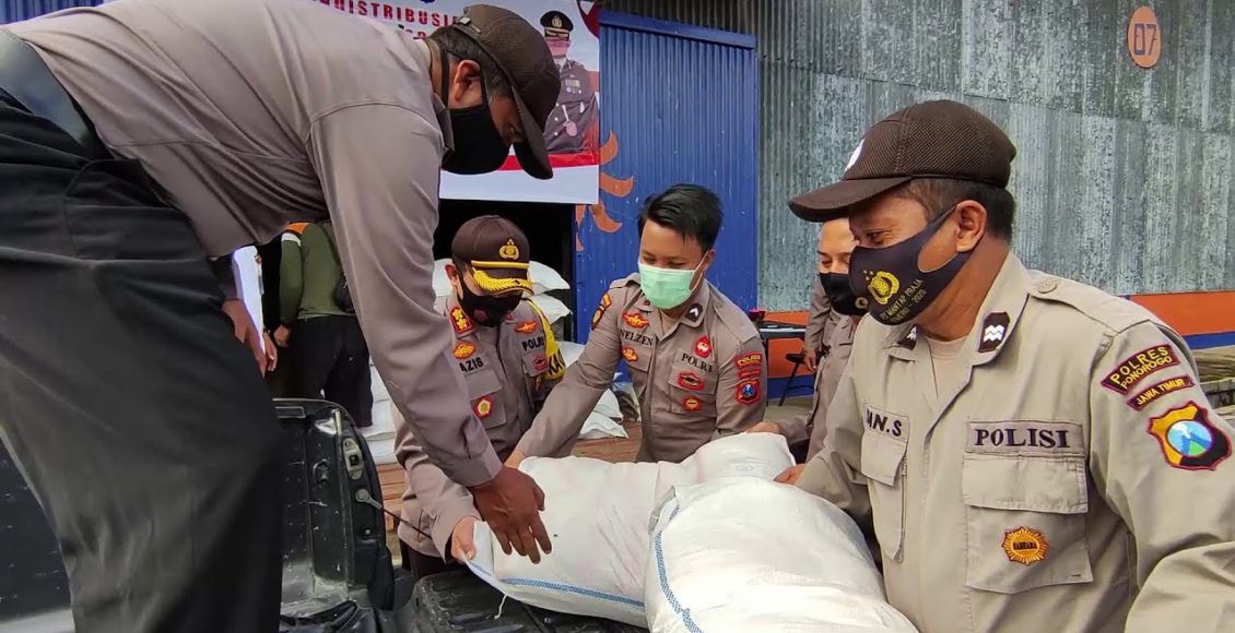PENDISTRIBUSIAN BERAS BANTUAN SOSIAL POLRI BAGI MASYARAKAT TERDAMPAK COVID-19