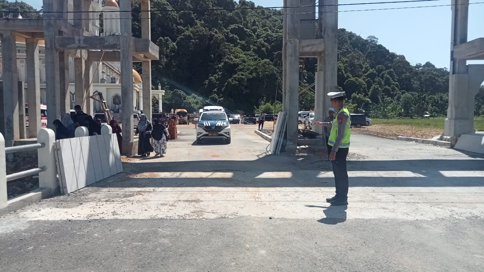 Tiga personel Satlantas Polres Aceh Jaya terlibat dalam kegiatan ini. Mereka memastikan kelancaran arus lalu lintas di sekitar lokasi keberangkatan calon jamaah haji, serta memberikan pengamanan yang diperlukan.