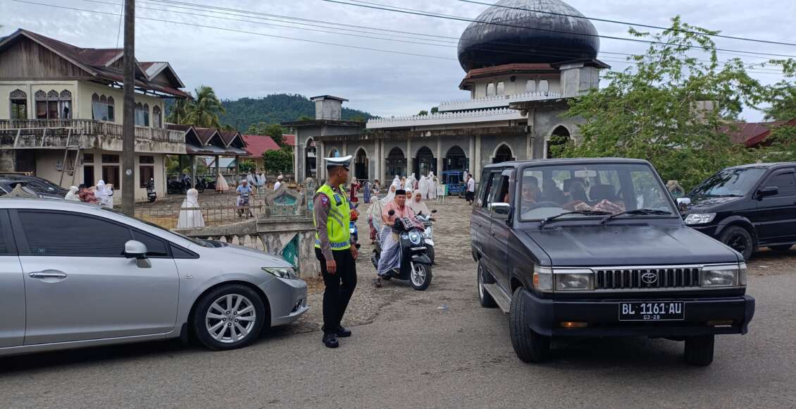 Pengaturan Lalulintas Jamaah Shalat Idul Adha Oleh Personil Satlantas Polres Aceh Jaya