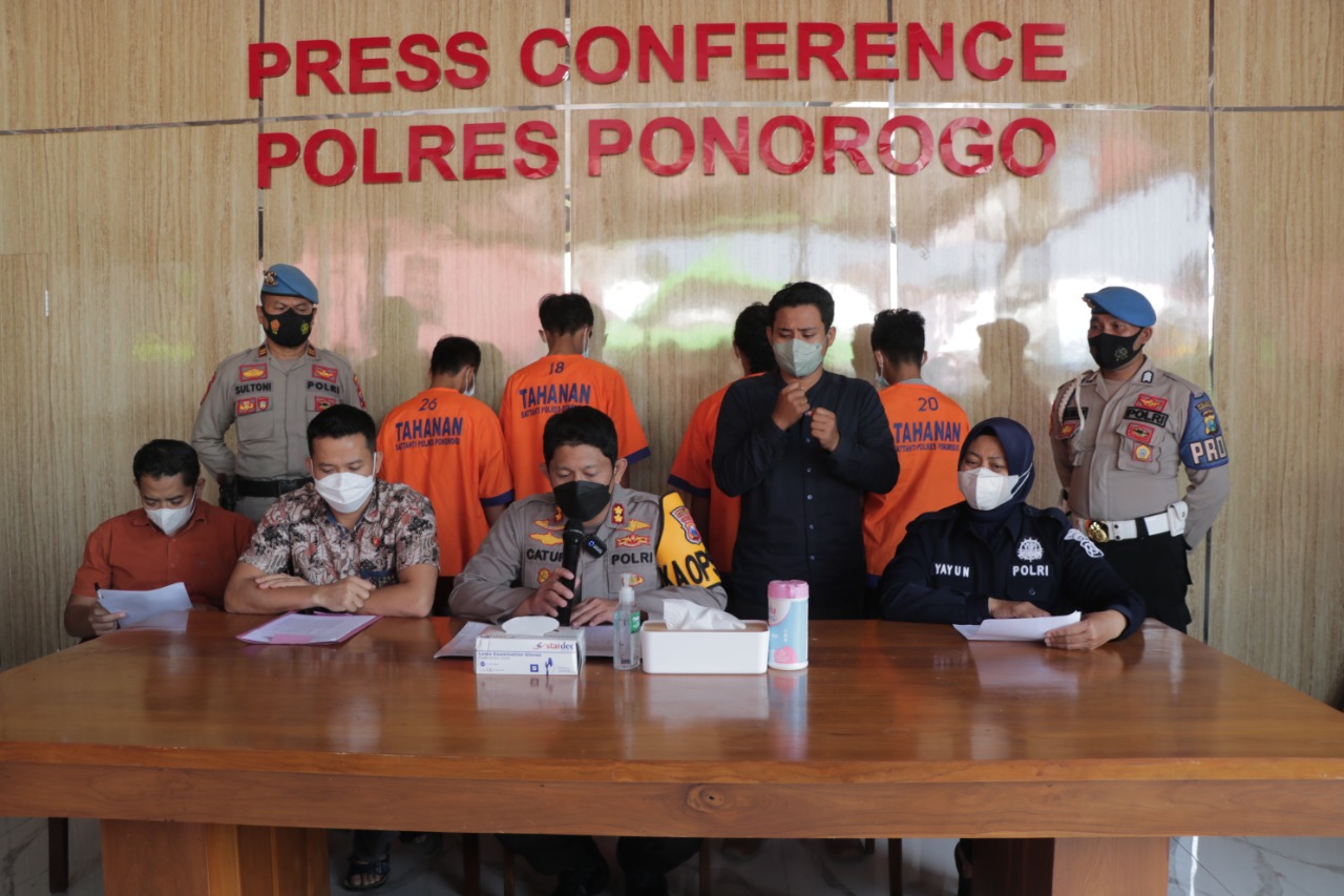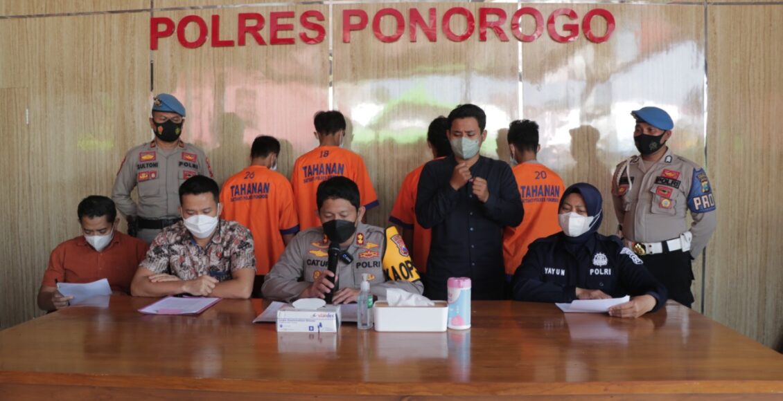 “Tersangka ada 7, inisial AC, AS, B, TY, BL, TW, dan T,” tutur Kapolres Ponorogo AKBP Catur Cahyono Wibowo kepada wartawan, Selasa (5/4) lalu.