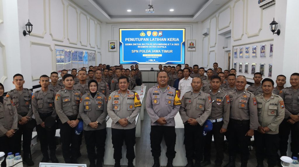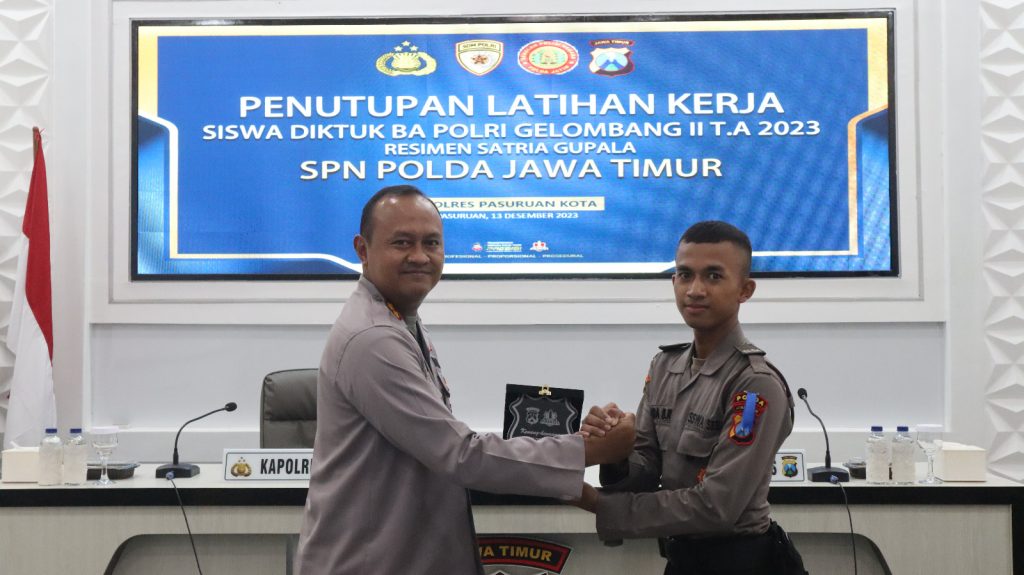 PASURUAN KOTA,ikagawanews.id – Kapolres Pasuruan kota AKBP Makung Ismoyo Jati, S.I.K., M.I.K memimpin pelaksanaan penutupan Latja siswa Diktuk Ba Polri Gelombang II 2023 SPN Polda Jatim yang dilangsungkan di aula Sanika Satya Wada Polres Pasuruan kota, Rabu (13/12/2023).