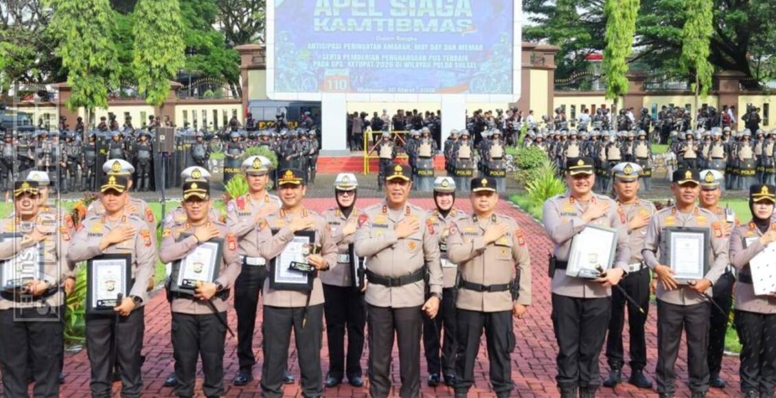 SULSEL,ikagawanews.id – Kapolda Sulawesi Selatan Irjen Pol. Djuhandhani Rahardjo Puro, S.H., M.H., menyerahkan penghargaan kepada jajaran Polres atas capaian kinerja dalam pelaksanaan Operasi Ketupat 2026. Kegiatan tersebut berlangsung di Lapangan Upacara Mapolda Sulsel, Senin (30/03/2026).