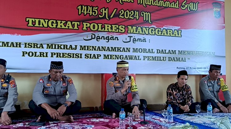 Kapolres Manggarai, AKBP Edwin Saleh, S.I.K, M.H, dalam sambutannya mengungkapkan rasa syukur atas kesempatan untuk memperingati peristiwa Isra Miraj. “Semoga kegiatan ini membawa berkah dan hikmah bagi kita semua,” ujarnya. Ia juga mengucapkan terima kasih kepada ustad yang memberikan tausiah, berharap agar hasilnya memberi manfaat bagi seluruh peserta.