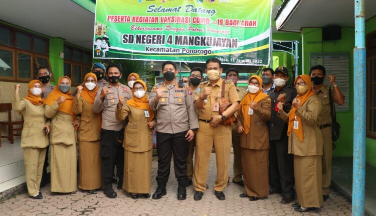 Percepat Pencapaian, Kapolres Ponorogo Tinjau Vaksinasi Merdeka Anak Usia 06-11 Tahun Di SDN Mangkujayan 4 Ponorogo