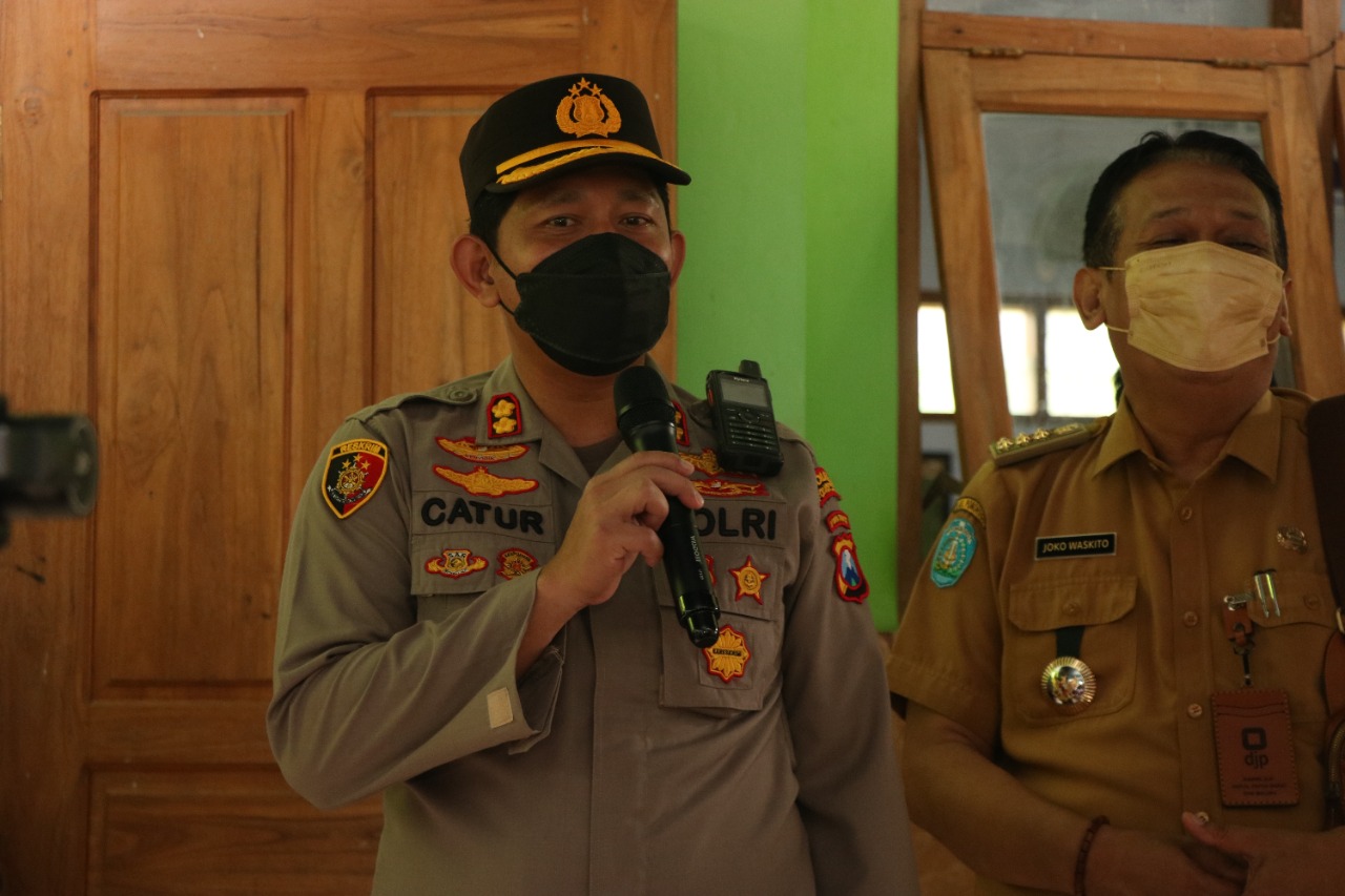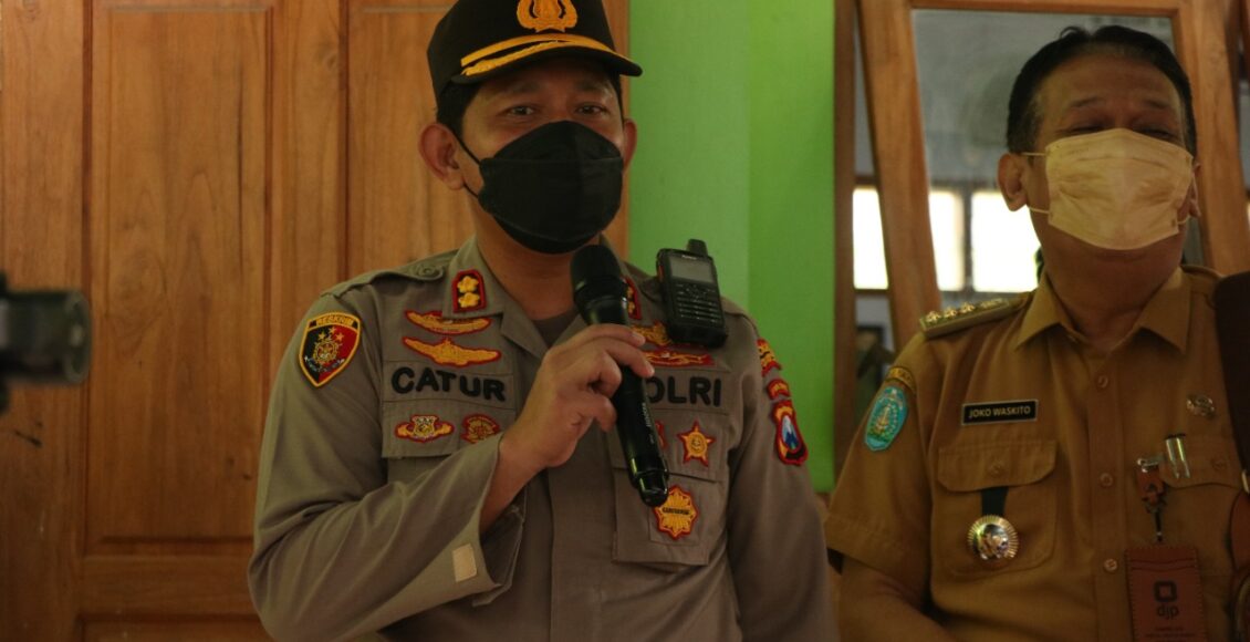 PONOROGO,ikagawanews.id – Kapolres Ponorogo AKBP Catur C. Wibowo, S.I.K., M.H. meninjau langsung kegiatan vaksinasi untuk anak dosis 1 yang dilakukan oleh Gerai Vaksin Klinik Polres Ponorogo bekerja sama dengan pihak Sekolah SDN Mangkujayan 4 Ponorogo, Selasa (11/01/2022)