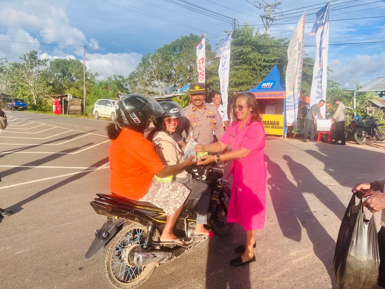 Pelaksanaan kegiatan berbagi ratusan takjil bagi pengendara yang melintas di depan Pospam Ops Ketupat Cartenz 2024 dan Buka Puasa Bersama diawal pengisian Pos Pam ops ketupat,”