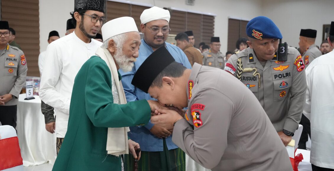 Dalam kegiatan ini, Kapolri turut menyerahkan bingkisan kepada anak yatim dan tokoh agama setempat.