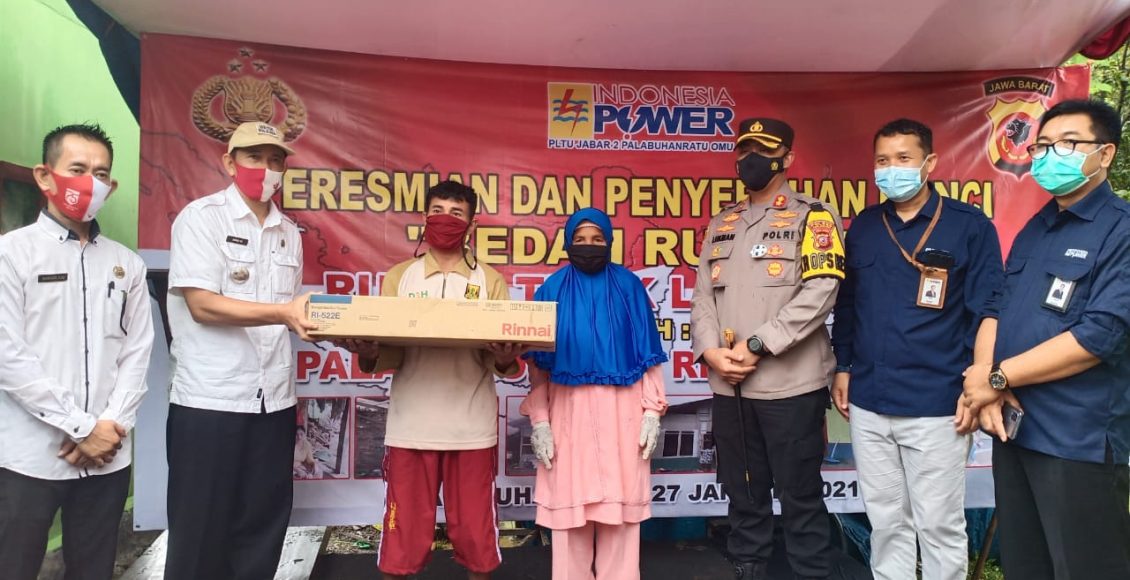 Dikesempatan itu, Kapolres Sukabumi juga menyerahkan 2 (dua) set tempat tidur dan GM Indonesia Power menyerahkan peralatan memasak yang diterima langsung oleh Ibu Sumi.