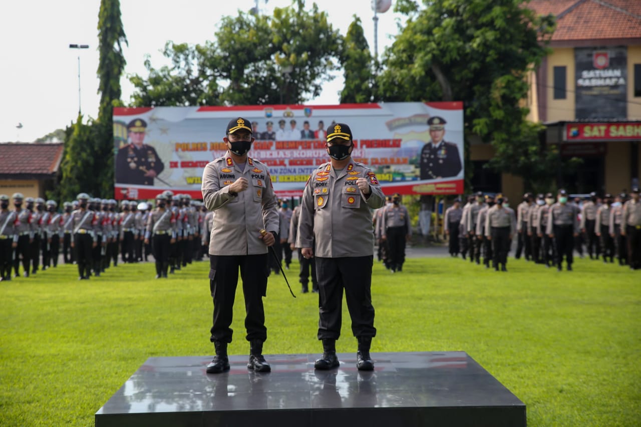 JOMBANG,IKAGAWANEWS.ID – Kepolisian Resort (Polres) Jombang menggelar acara Laporan Kesatuan (Lapsat) di lapangan Mapolres setempat, Sabtu 30/05/20.