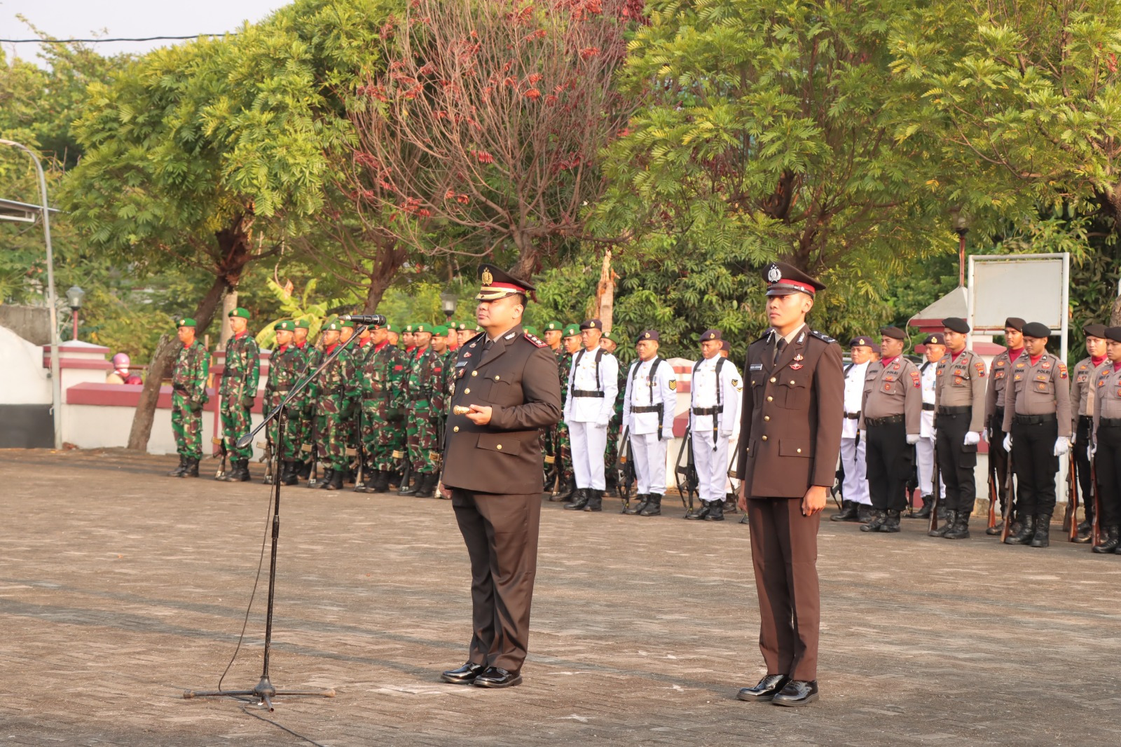 Bertindak sebagai Komandan Upacara, KBO Sat Samapta Polres Brebes Ipda M Jusup.