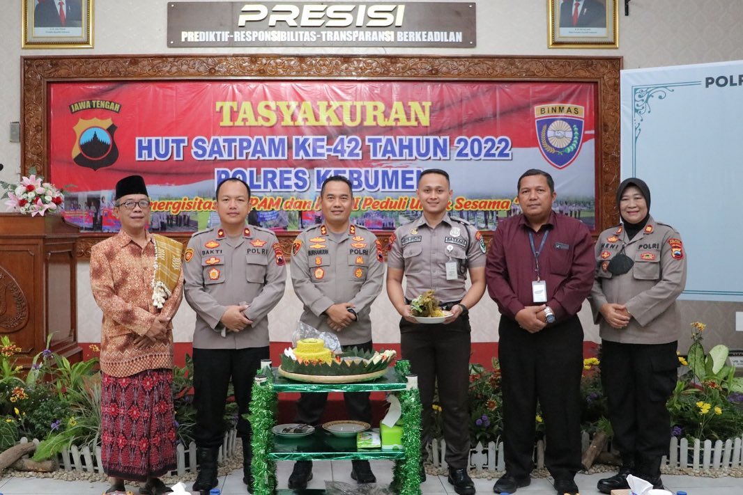 “Pada kesempatan yang berbahagia ini, saya selaku pimpinan Polres Kebumen mengucapkan selamat atas prestasi, serta selamat ulang tahun Satpam ke-42. Semoga anggota Satpam