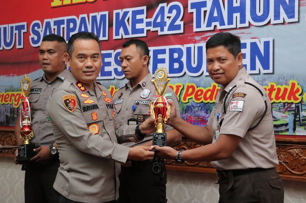 Pada momen puncak peringatan HUT Satpam ke 42, Kapolres Kebumen menyerahkan piagam penghargaan dari Kapolda Jateng karena Satpam di bawah binaan Polres Kebumen memenangkan juara 3 di tingkat Polda Jateng kategori Penanganan TKP.