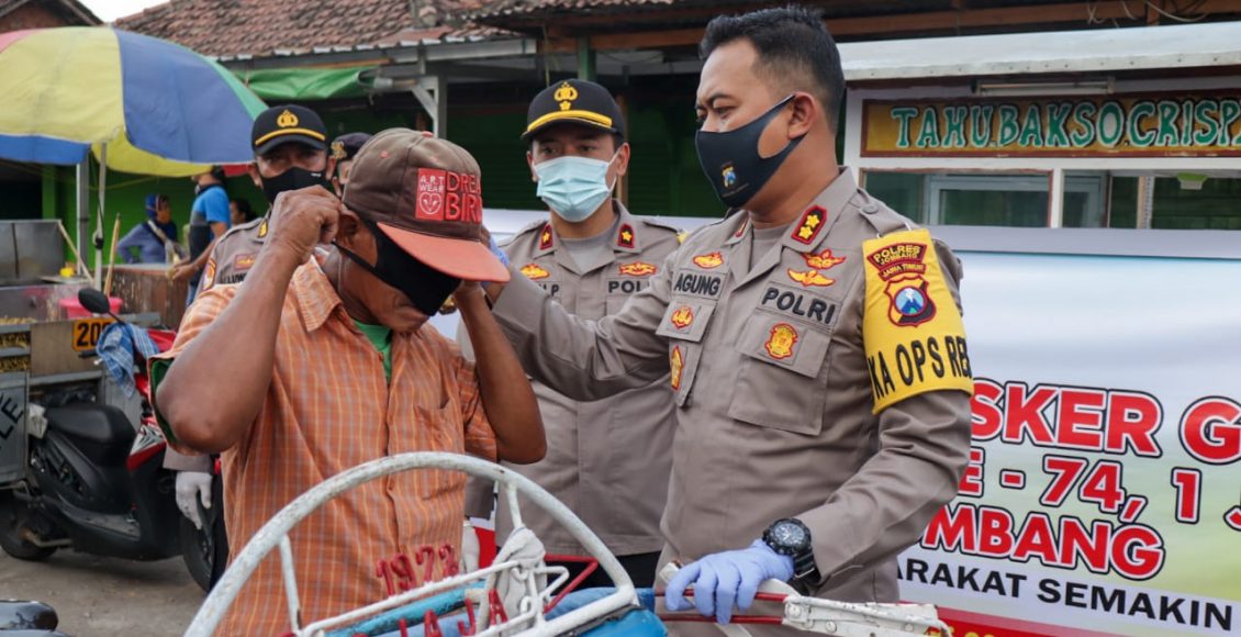 Hal ini dilakukan sebagai bentuk pencegahan penyebaran Covid-19. Kapolres Jombang membagikan 800 masker kepada masyarakat yang dijumpai tidak memakai masker.