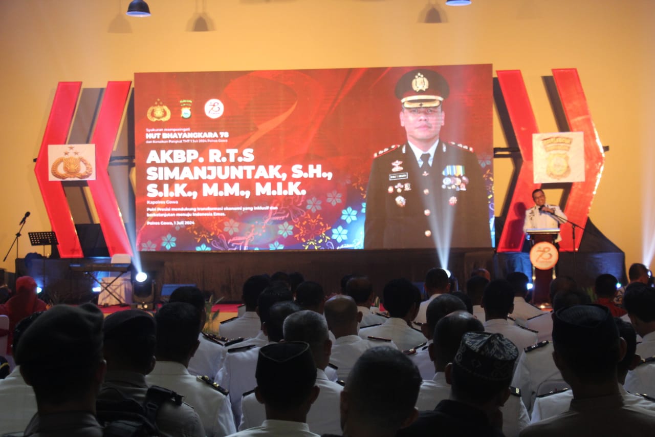 GOWA,ikagawanews.id – Polres Gowa menggelar acara syukuran dalam rangka memperingati Hari Ulang Tahun (HUT) Bhayangkara yang ke-78, bertempat di Gedung Pelayanan Terpadu Polres Gowa, Senin (01/07/2024) Malam.