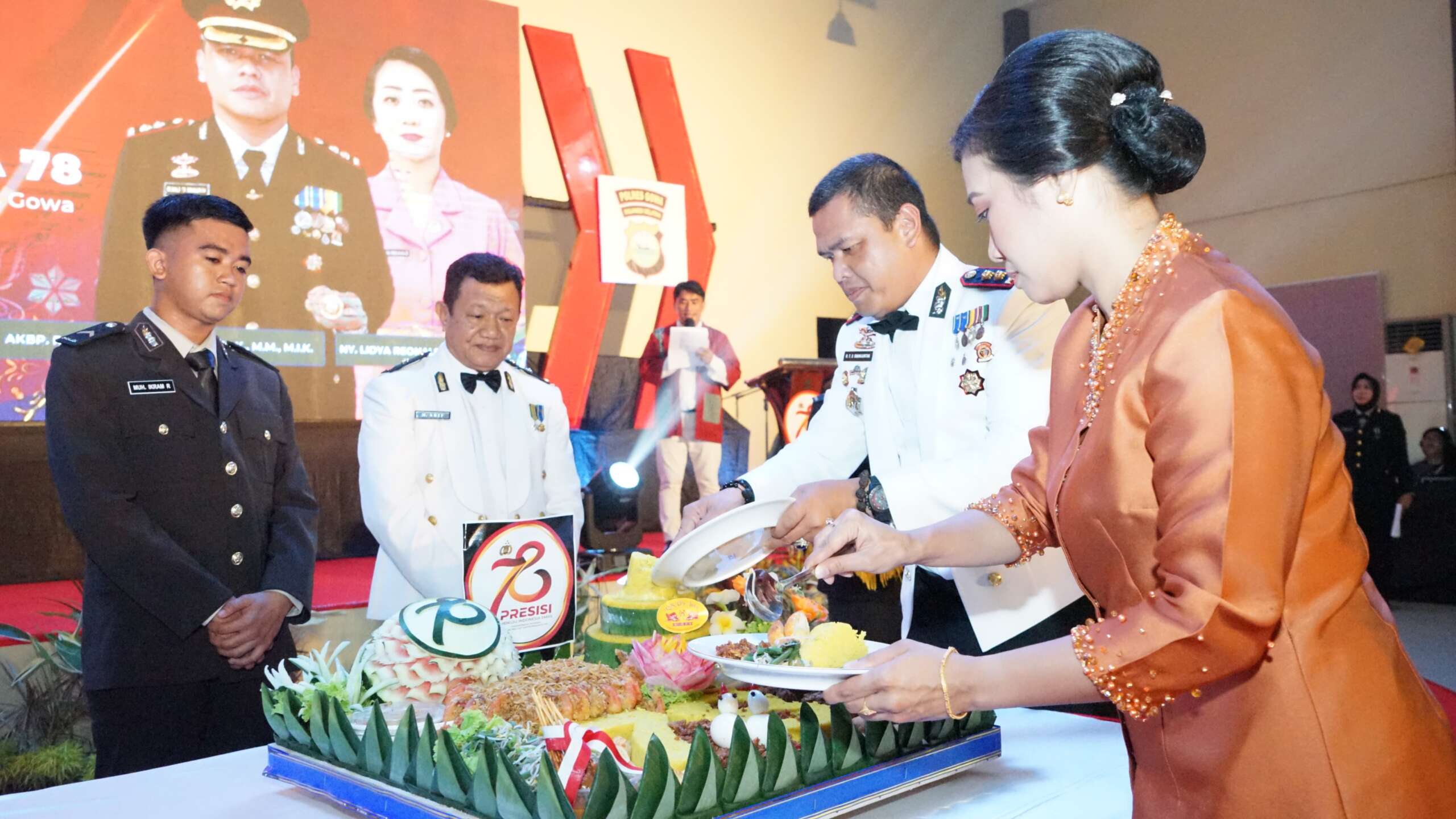 Dalam acara ini juga, dilakukan pemotongan tumpeng oleh Kapolres Gowa AKBP R.T.S Simanjuntak, S.H., S.I.K., M.M., M.I.K bersama Ketua Bhayangkari Cabang Gowa, Ny. Lidya Reonal dan di berikan secara simbolis kepada anggota Polres Gowa yang termuda dan tertua.
