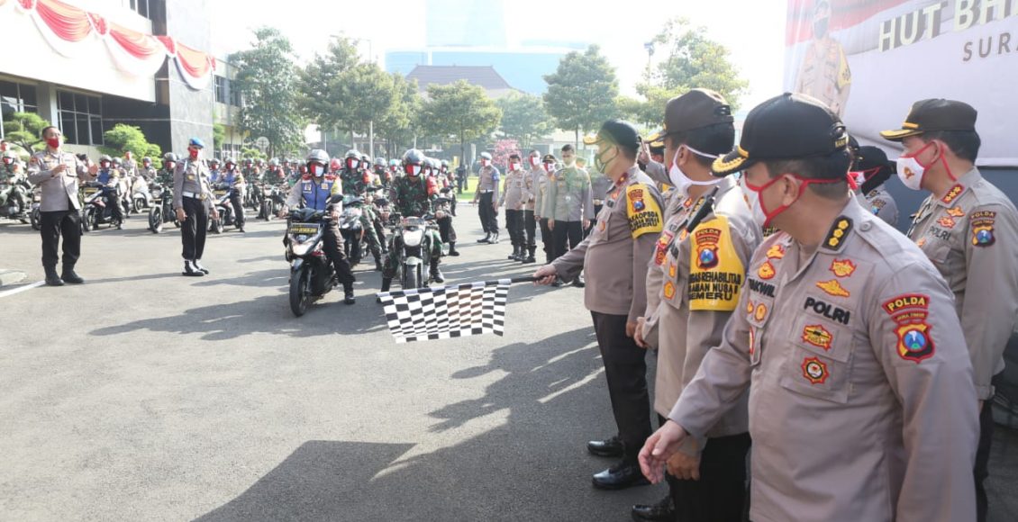 Dalam sambutannya Wakapolda Jatim mengatakan,”Momentum rangkaian peringati hari Bhayangkara ke-74 tahun 2020, Polda Jawa Timur terus berupaya meringankan beban masyarakat terdampak Covid19.