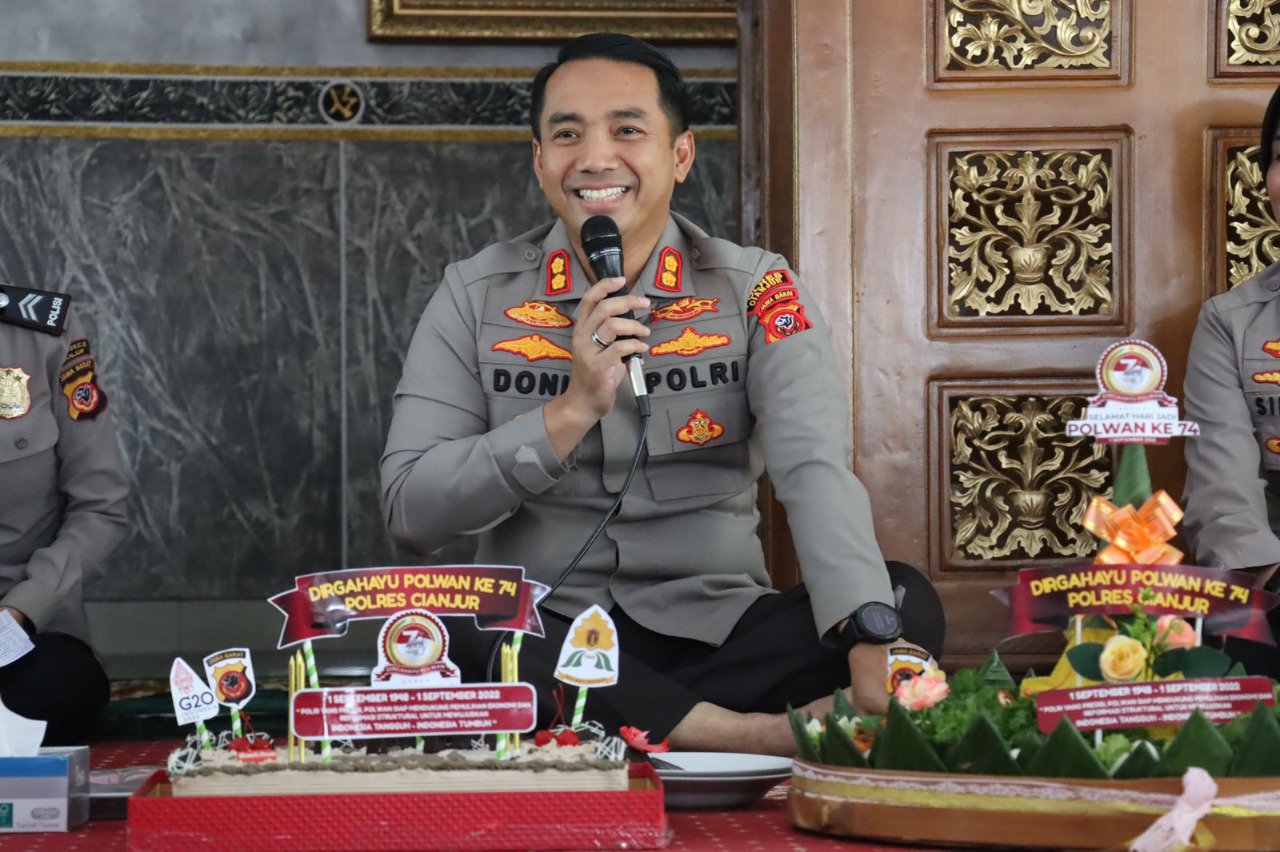 “Selamat hari jadi yang ke-74 untuk Polwan Republik Indonesia dan terkhusus Polwan yang ada di Polres Cianjur, semoga Polwan Cianjur semakin kompak, berprestasi dan unggul serta bisa terus berkontribusi dan bermanfaat kepada masyarakat Kabupaten Cianjur.“ucap Kapolres