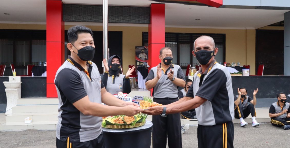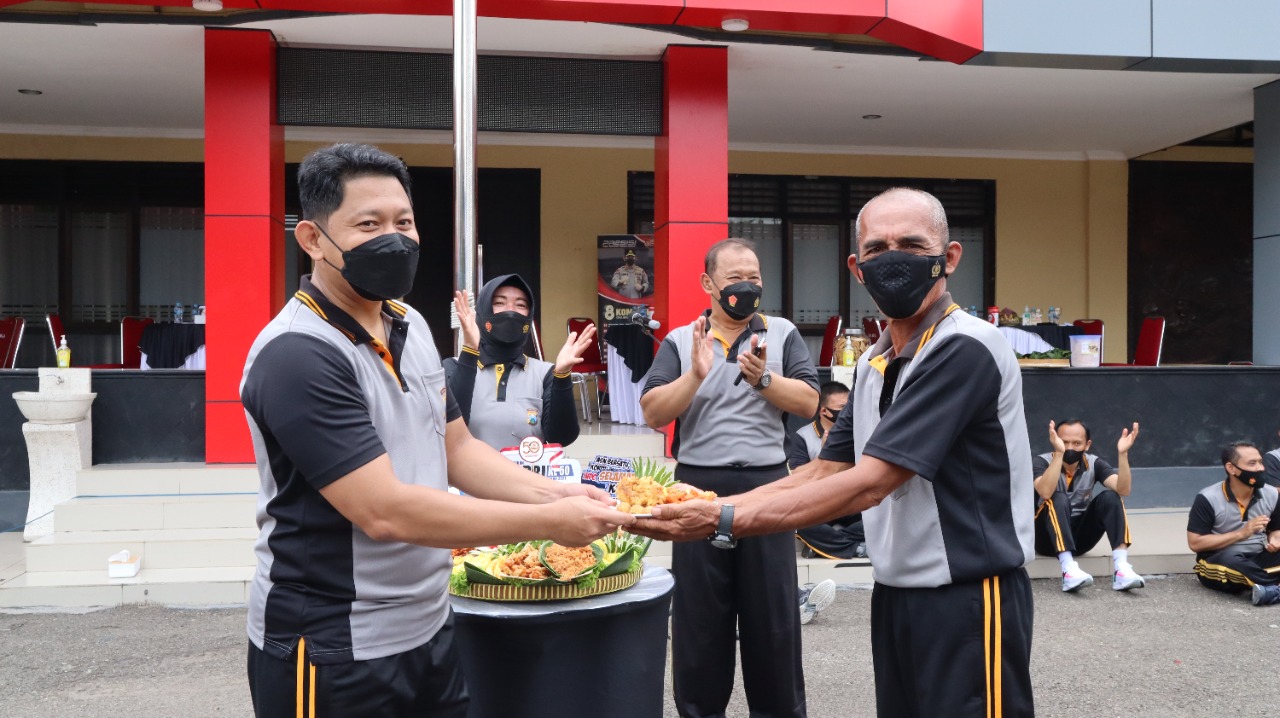 Kegiatan diawali dengan pelaksanaan olah raga bersama dilanjutkan dengan pemotongan tumpeng oleh Kapolres Ponorogo kemudian diserahkan kepada perwakilan ASN tertua Pengatur Kusmanto Baum Sium Polsek Bungkal Polres Ponorogo.