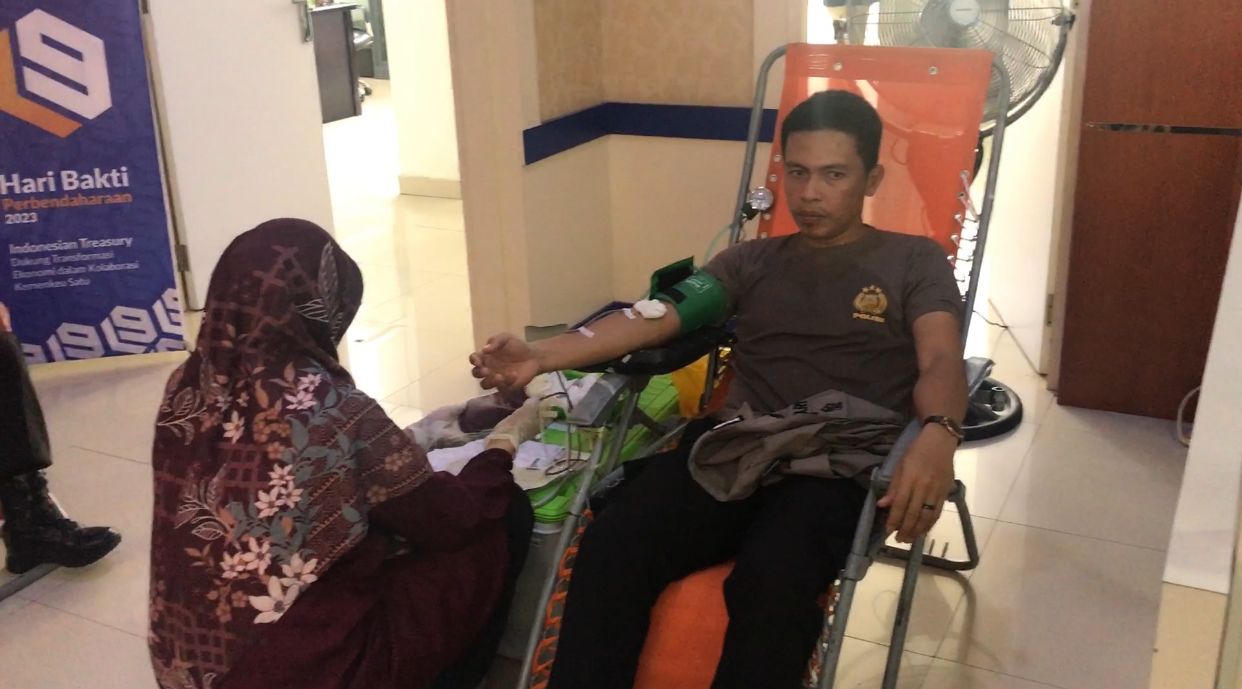 Sejumlah personel perwakilan Polres Sinjai yang dipimpin oleh Kabag SDM Akp Syamsul Bahri, S.Sos.,MM menyumbangkan darahnya dalam kegiatan sosial di KPPN Sinjai, untuk membantu masyarakat yang membutuhkan darah.