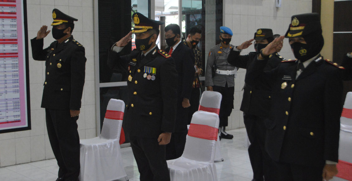 Personel Bagian Satuan dan Seksi melaksanakan giat upacara secara virtual di ruang kerja masing-masing dan Kapolsek beserta anggota melaksanakan di Mapolsek masing-masing.