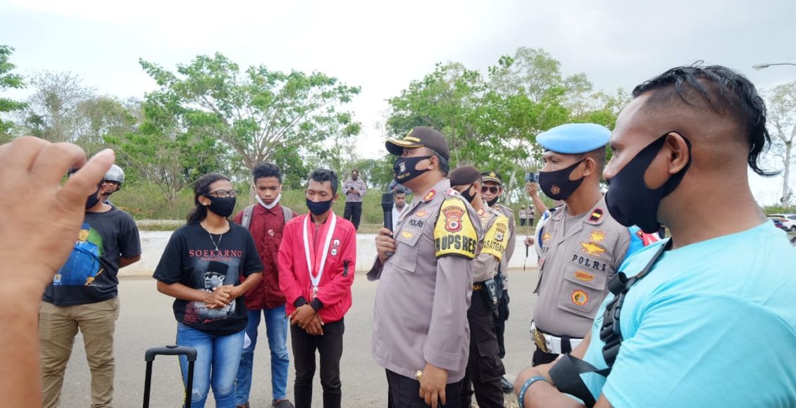 (3). sekitar pukul 10.03 Wit, peserta aksi unjuk rasa damai tiba di Polres Maluku Barat dan diterima langsung oleh Kapolres Maluku Barat Daya AKBP. Budi Adhy Buono, S.H., S.I.K., M.H.