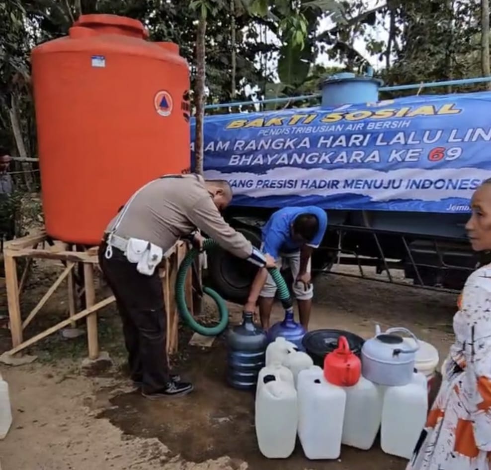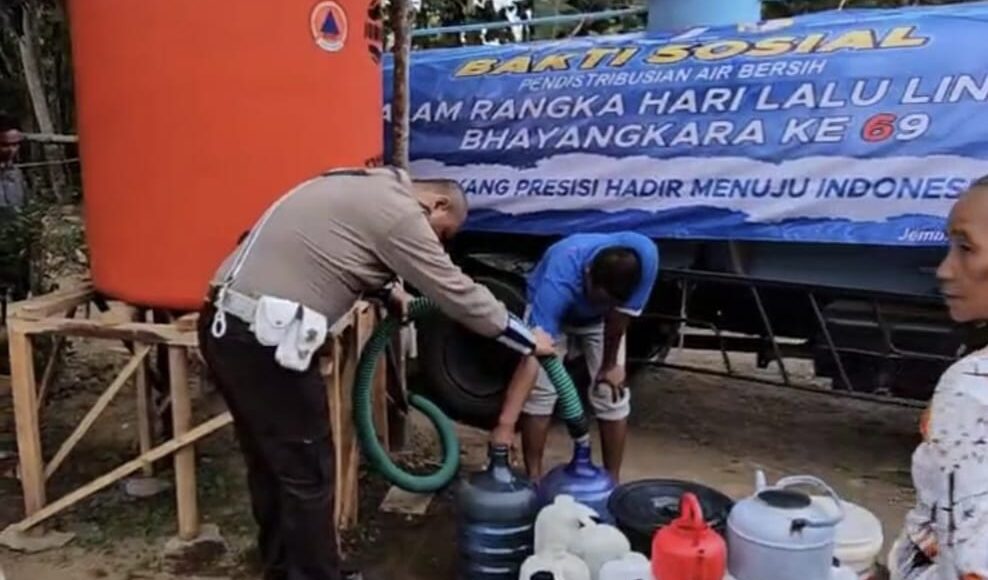 Peringati Harlantas Bhayangkara ke – 69, Ditlantas Polda Jatim Salurkan Air Bersih untuk Warga Terdampak Kemarau