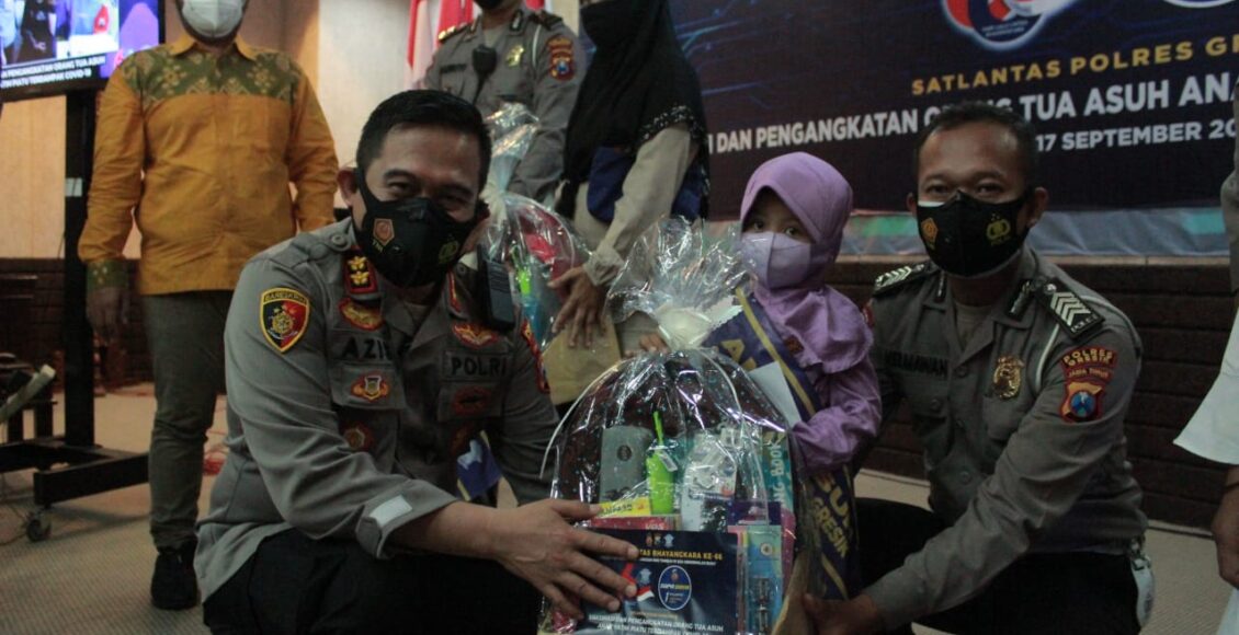 GRESIK,IKAGAWANEWS.ID – Dalam memperingati Hari Lalu Lintas Bhayangkara ke-66, sebanyak 63 anggota polantas Polres Gresik mengabdikan diri sebagai orang tua asuh bagi 63 anak yatim yang orang tuanya meninggal dunia karena covid-19.