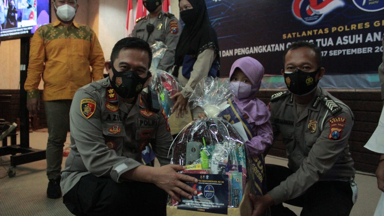 Kapolres Gresik AKBP Moch Nur Azis.SH,SIK,MM mengatakan, kegiatan ini sebagai bentuk kepedulian Polri khususnya Polantas di Hari Ulang Tahunnya untuk turut meringankan beban para anak yatim yang orang tuanya meninggal dunia karena covid.