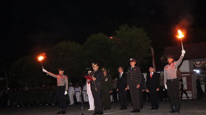 Brebes,ikagawanews.id – Kapolres Brebes Polda Jawa Tengah AKBP Guntur Muhammad Tariq memimpin upacara apel kehormatan dan renungan suci di Taman Makam Pahlawan (TMP) Kusumatama Brebes, Rabu malam (16/8/2023) mulai pukul 00.00 Wib.