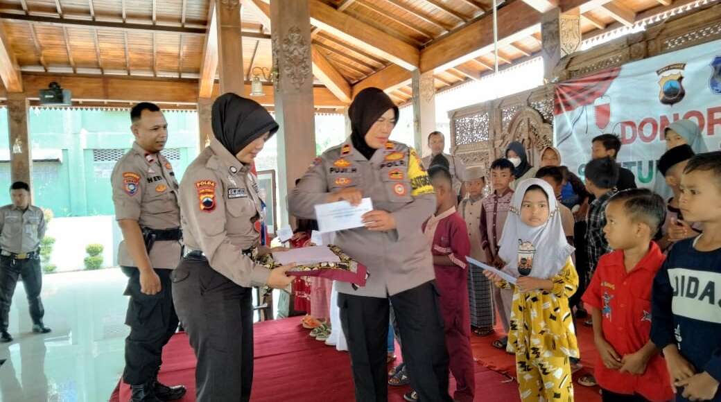 Pemberian santunan diserahkan langsung oleh Kasat Binmas Iptu Puji Haryati yang mewakli Kapolres Brebes AKBP Guntur Muhammad Tariq.