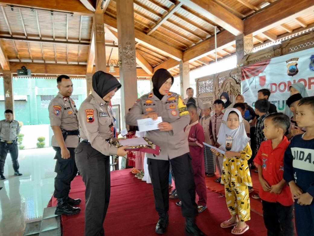 Brebes,ikagawanews.id – Satuan Pembina Masyarakat (Sat Binmas) Polres Brebes melaksanakan kegiatan Donor darah dan Bakti Sosial pemberian santunan kepada sejumlah anak yatim piatu.