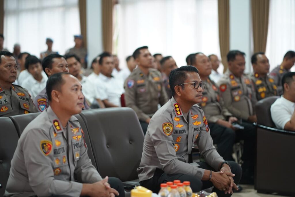 Kegiatan tersebut dihadiri langsung oleh Kapolresta Banyumas Kombes Pol Dr. Ari Wibowo, S.I.K., M.H., Wakapolresta Banyumas AKBP Wahyudi Satriyo Bintoro, S.H., S.I.K., M.H., para Pejabat Utama (PJU) Polresta Banyumas, para Kapolsek jajaran, Wakasat, KBO, Kanit Satreskrim, Satlantas, Satresnarkoba, serta Kanit Reskrim Polsek jajaran. Sementara itu, anggota Polsek jajaran lainnya mengikuti kegiatan melalui Zoom Meeting.