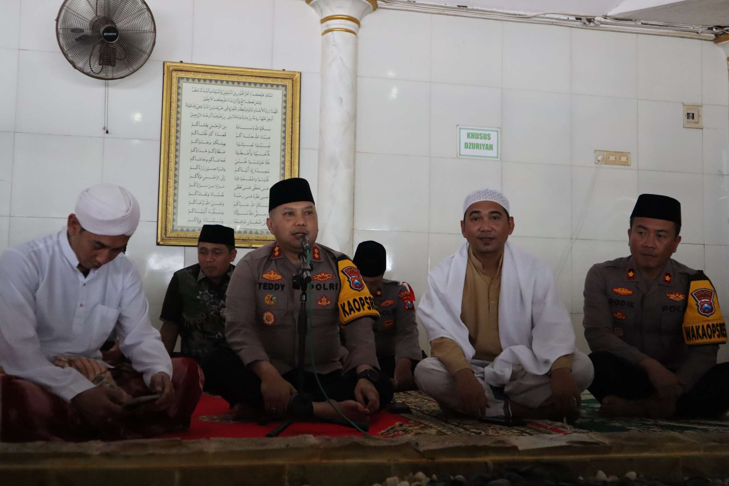 “Iya betul, hari ini kami sowan ke salah satu ulama di Kota Kediri. Bersilaturahmi dan membangun sinegritas antara kepolisian dan tokoh agama sekaligus mohon doa agar seluruh anggota kepolisian selalu dilimpahkan kesehatan dan keselamatan dalam menjaga kondusivitas Kamtibmas di wilayah hukum Polres Kediri Kota.” Ujar AKBP Teddy.