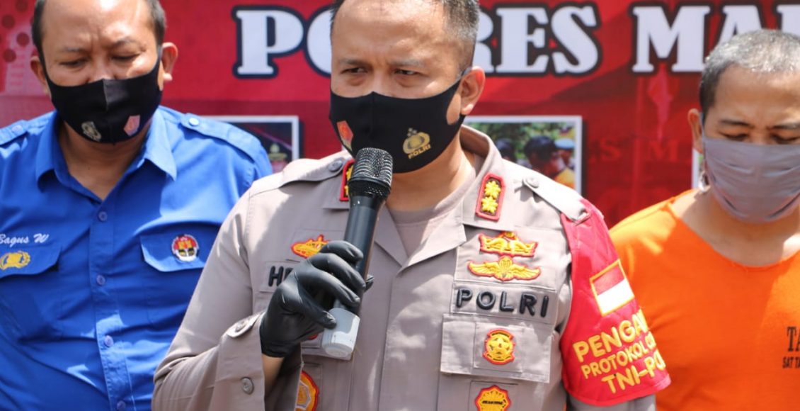 Adapun tersangka beserta barang bukti yang dibeber Polisi di Ruang Lobby dengan inisial, KK, lk, (43 tahun), Kec. Pakisaji Kab. Malang, ditangkap di Dsn. Lowok Desa Permanu Kec. Pakisaji Kab. Malang.