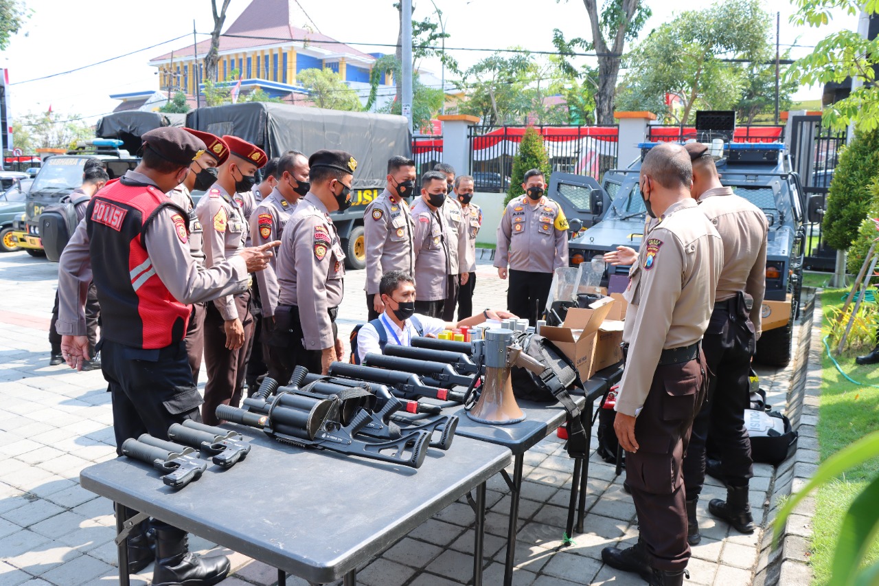 Kapuslitbang Polri Brigjen Pol. Drs Iswyoto Agoeng Lesmana Doeta,MSi.,didampingi Kapolres Gresik AKBP Mochamad Nur Azis melakukan supervisi penelitian tentang peralatan Dalmas dan PHH di Mapolres Gresik. Selasa(21-06-2022)