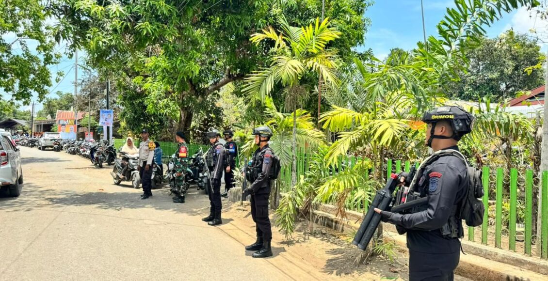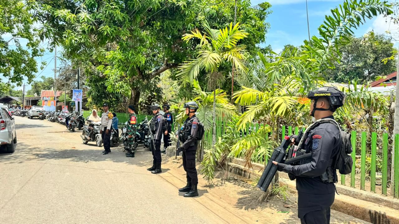 Personel Brimob dan Polsek Barombong Amankan Kampanye Paslon Cabup Gowa Nomor Urut 2 di Desa Tinggimae