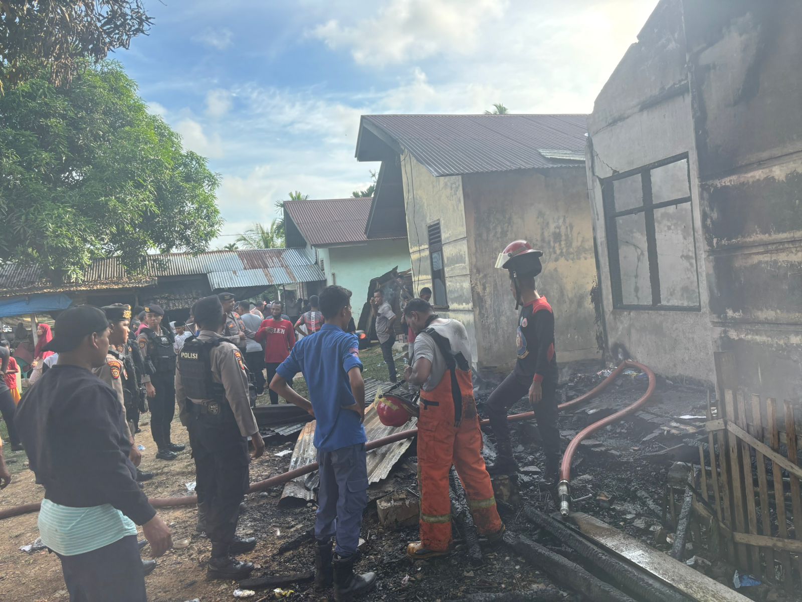 Personel Patroli Presisi Polres Aceh Jaya Bantu Penanganan Kebakaran Rumah di Gampong Baro