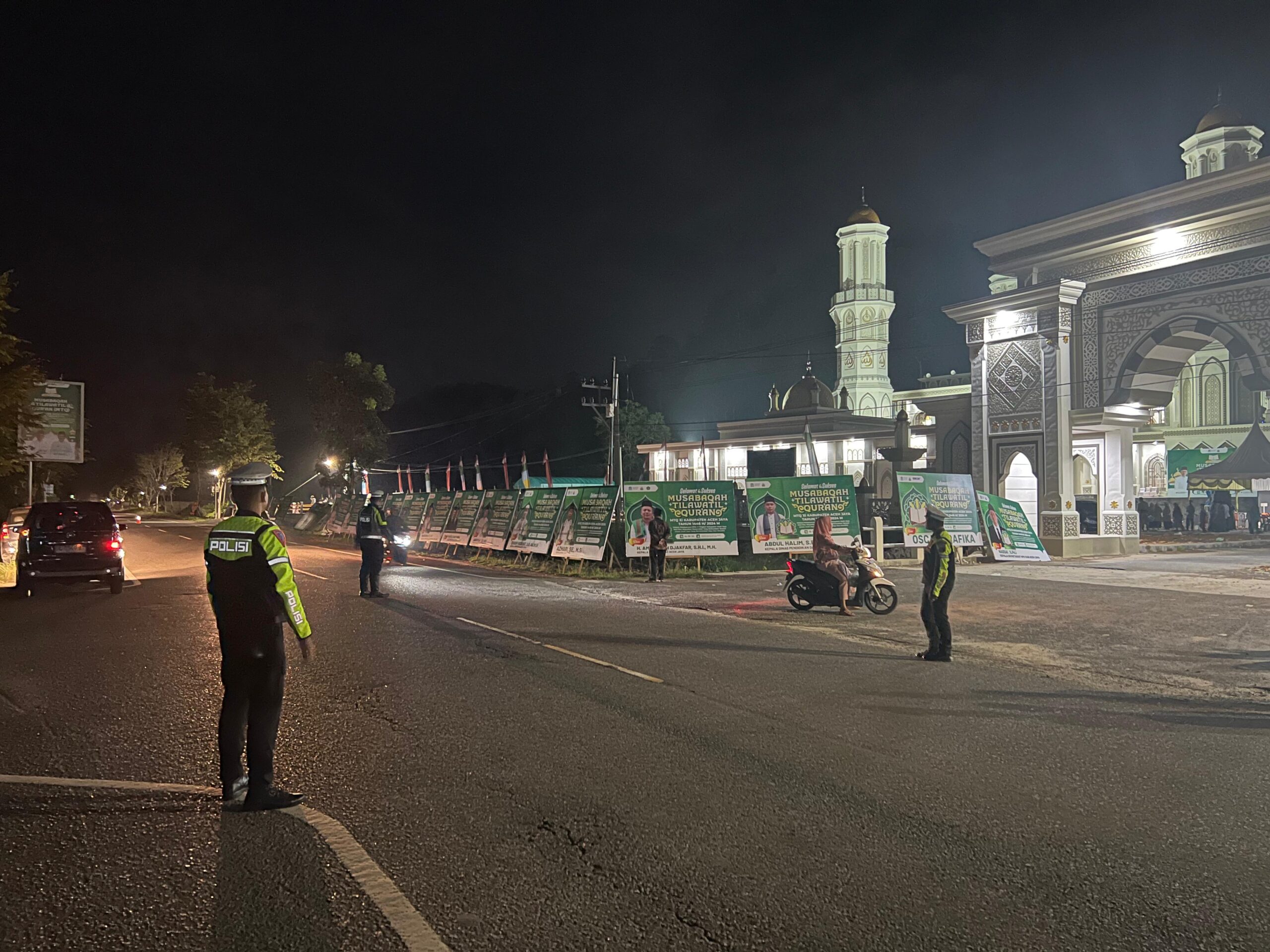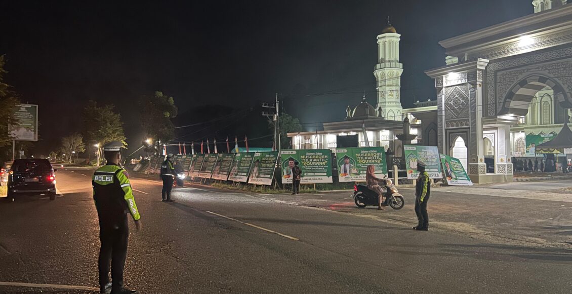 Personel Polres Aceh Jaya Amankan Dan Atur Lalu Lintas Pada Pelaksanaan MTQ Ke-XI malam ke III