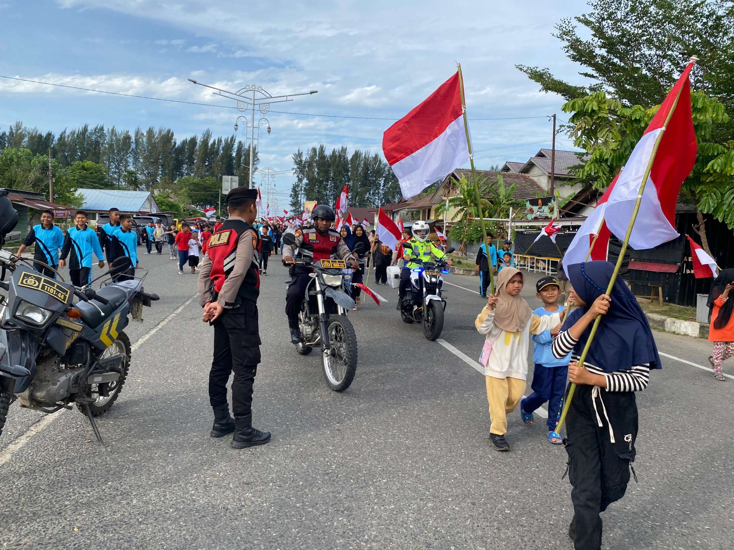Personel Polres Aceh Jaya Amankan Kegiatan Senam Bersama dan Jalan Santai dalam Rangka HUT Aceh Jaya ke-22 Tahun 2024