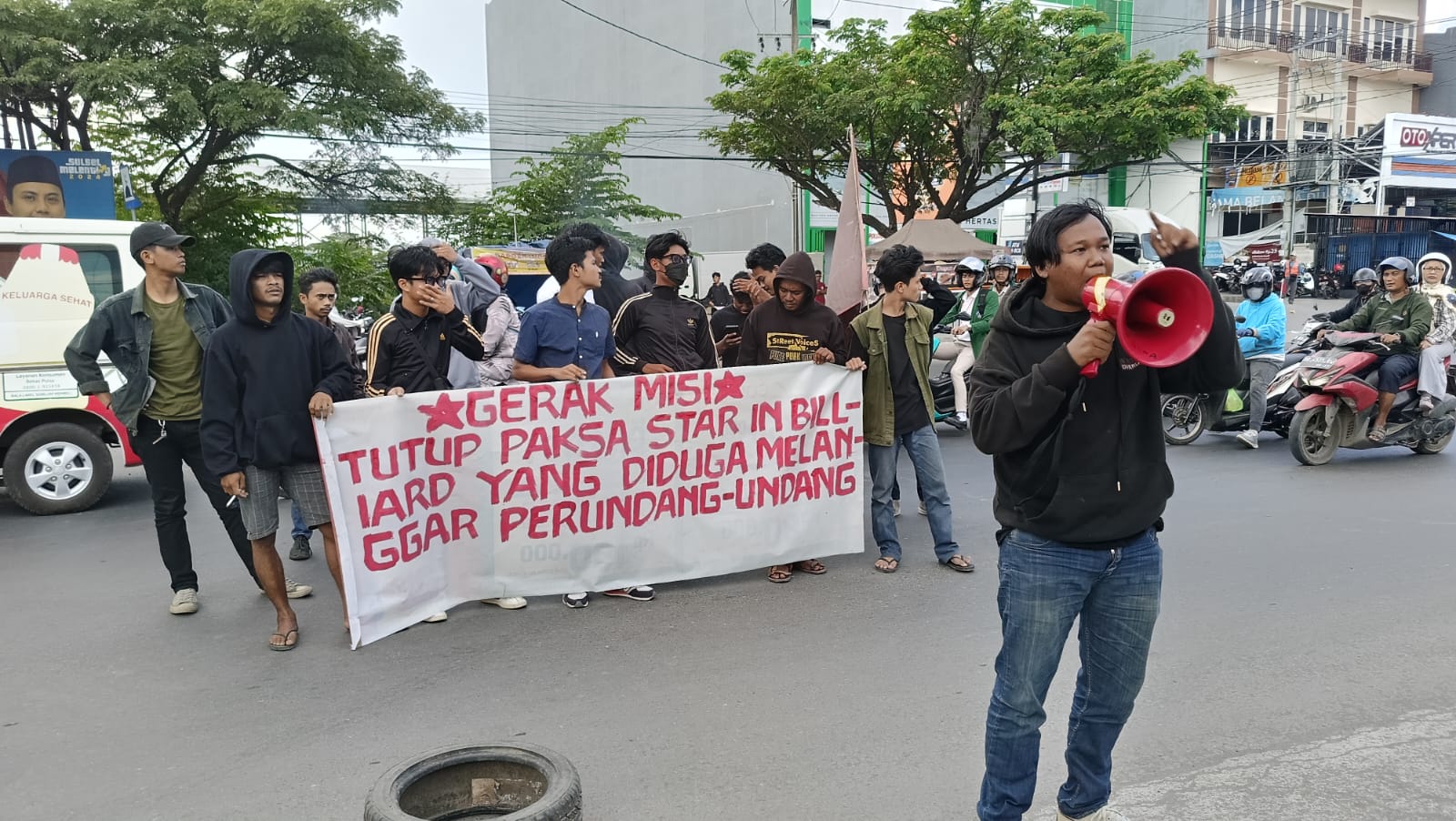 Aksi Unjuk Rasa tersebut merupakan aksi terkait dugaan adanya prostitusi dan tidak memiliki ijin penjualan minuman keras.