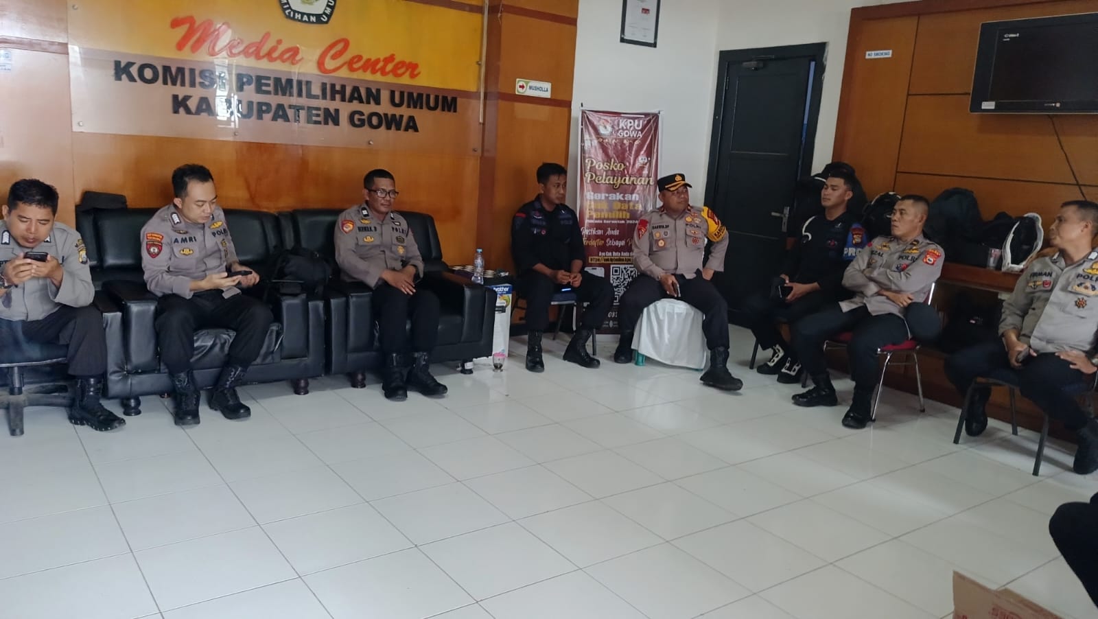 Personil Polres Gowa amankan Pleno Perhitungan Suara Hasil Pilkada di KPU Kab. Gowa