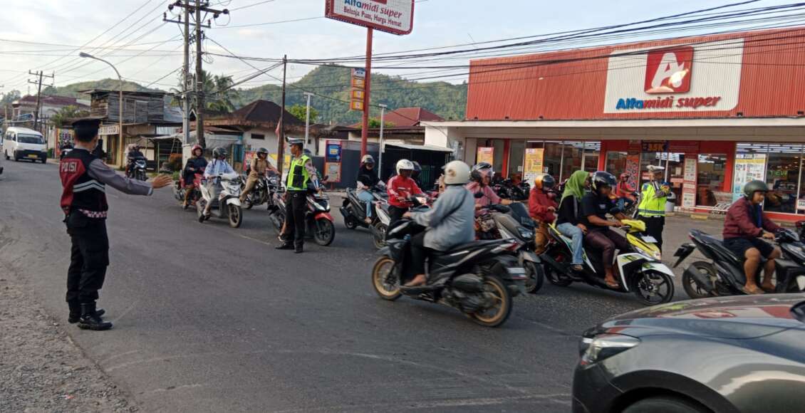 Tapteng,ikagawanews.id – Personil Polres Tapteng laksanakan pos padat pagi (strong point) pada titik persimpangan padat aktivitas kendaraan bermotor dipagi hari, Senin (27/5/2024) pagi