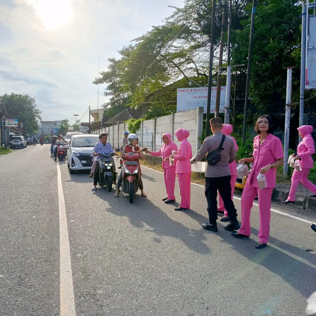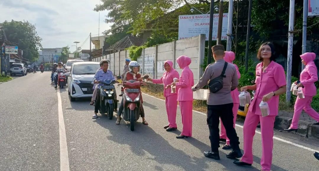 Personil Polsek Labuhan Badas Bersama Bhayangkari Bagikan Takjil ke Pengguna Jalan